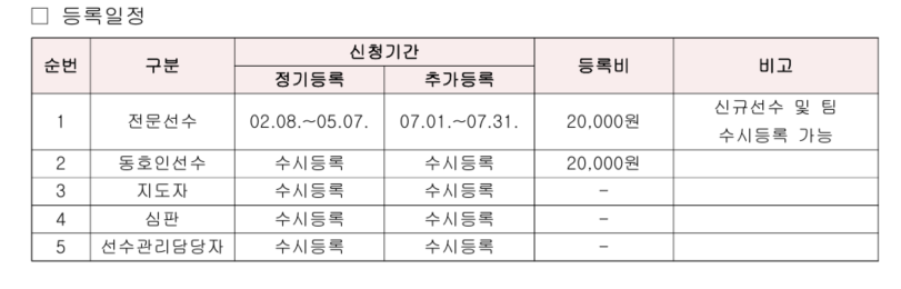 Á¦¸ñ 2021³âµµ ´ëÇѼö¿µ¿¬¸Í °æ±âÀÎ µî·ÏÀÏÁ¤ ¾È³» (Àü¹®¼±¼ö, µ¿È£ÀÎ, ¿Ü±¹±¹Àû ¹× À¯Çлý)