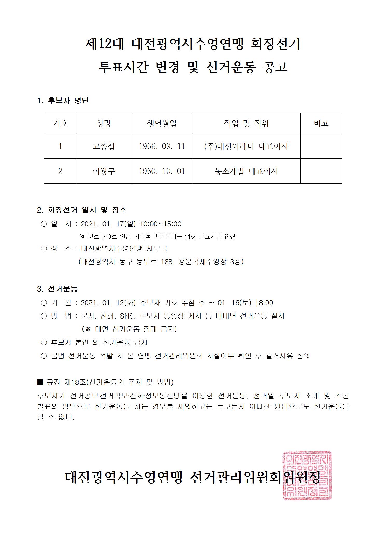 Á¦12´ë ´ëÀü±¤¿ª½Ã¼ö¿µ¿¬¸Í ȸÀå¼±°Å ÅõÇ¥½Ã°£ º¯°æ ¹× ¼±°Å¿îµ¿ °ø°í.pdf